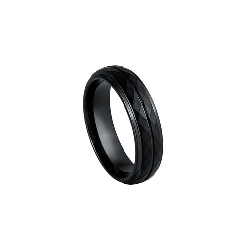130738 JOSEF ELIAS 6MM Faceted Black Ion Plated Tungsten with Center Groove