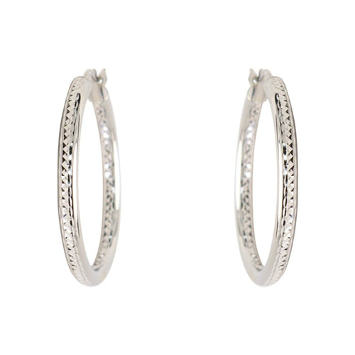 231382 10K White Gold 25MM Diamond Cut Hoop Earrings