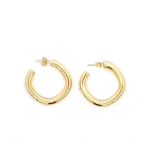232217 10K Yellow Gold Soft Square Hollow Hoop Stud Earrings
