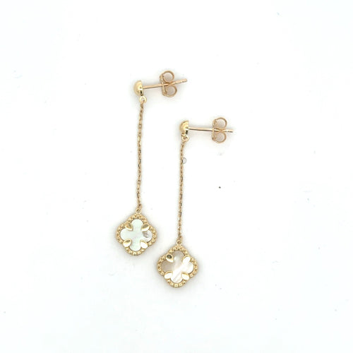 232213 10K Yellow Gold 4 Leaf Clover Mother of Pearl Drop Stud Earrings