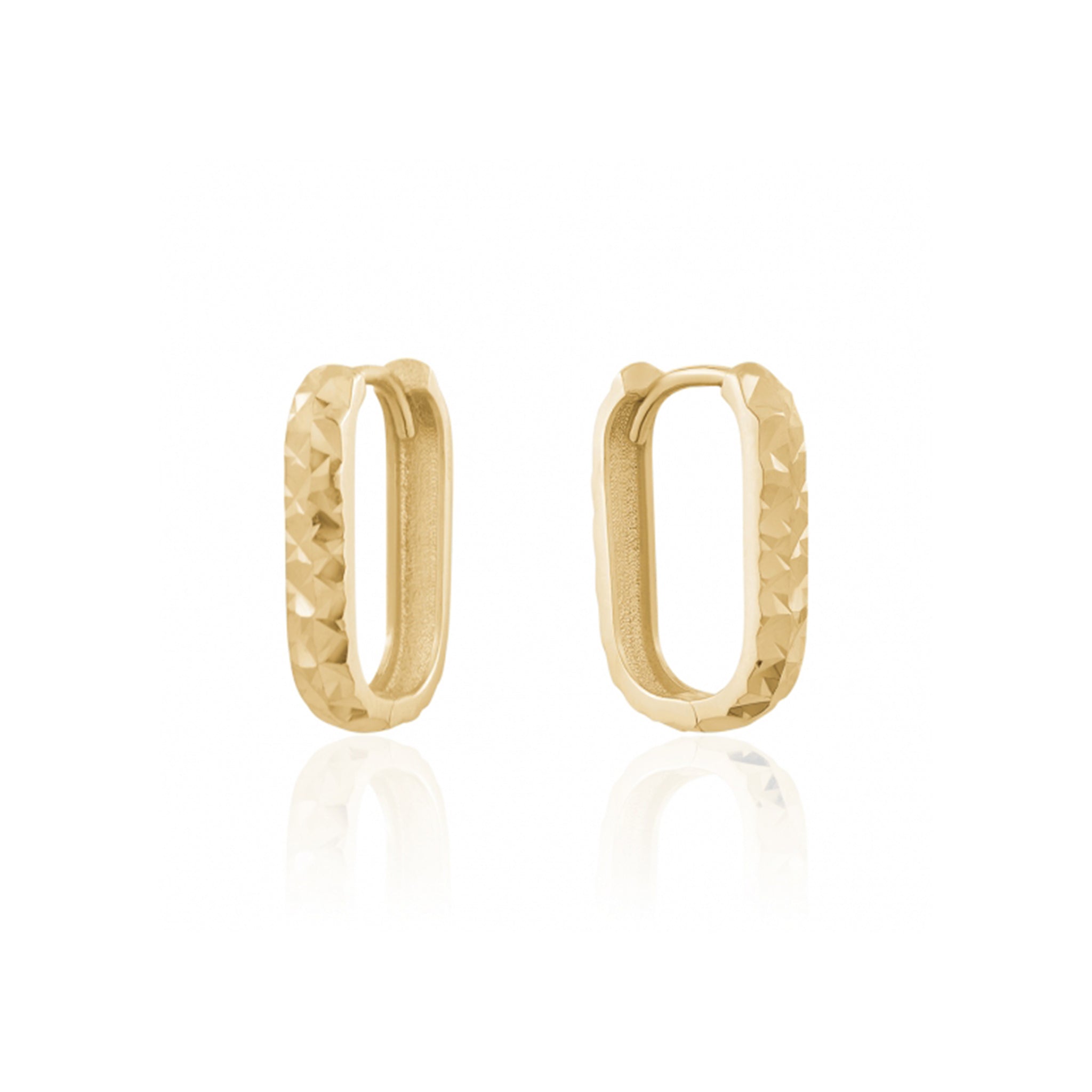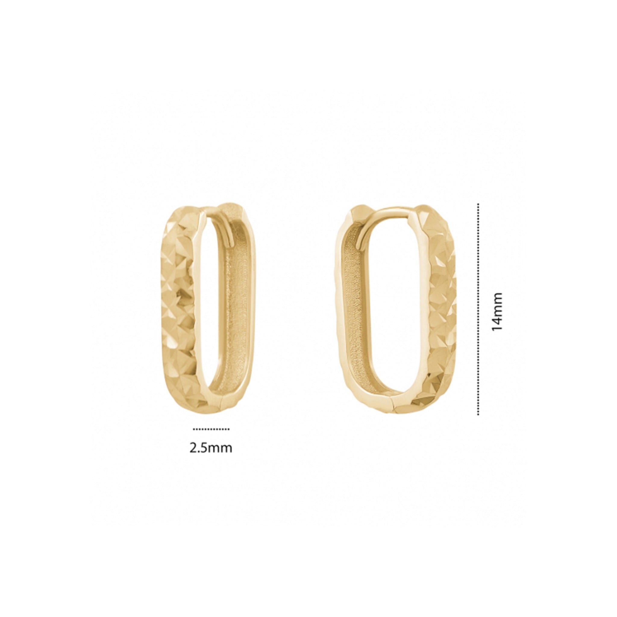 These 10K Yellow Gold Diamond Cut Rectangle Huggie Earrings are beautifully crafted. The diamond cutting adds a touch of sparkle, making them a stunning addition to any jewelry collection.
